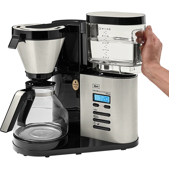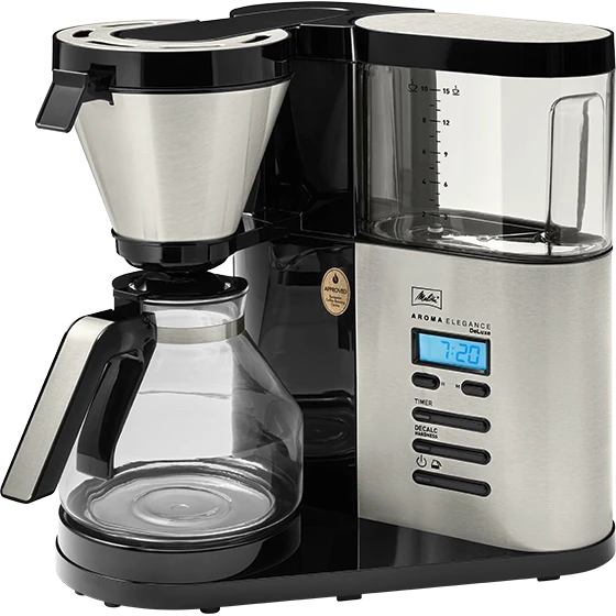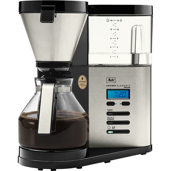 Die Melitta® AromaElegance® DeLuxe vereint Bedienkomfort, Funktionalität und Design auf höchstem Niveau − für ein Kaffeeerlebnis der Spitzenklasse. Vom abnehmbaren Wassertank über die praktische Timer-Funktion bis hin zur AromaControl-Technologie für maximales Kaffeearoma auch bei kleinen Mengen: hier bleibt kein Wunsch offen..