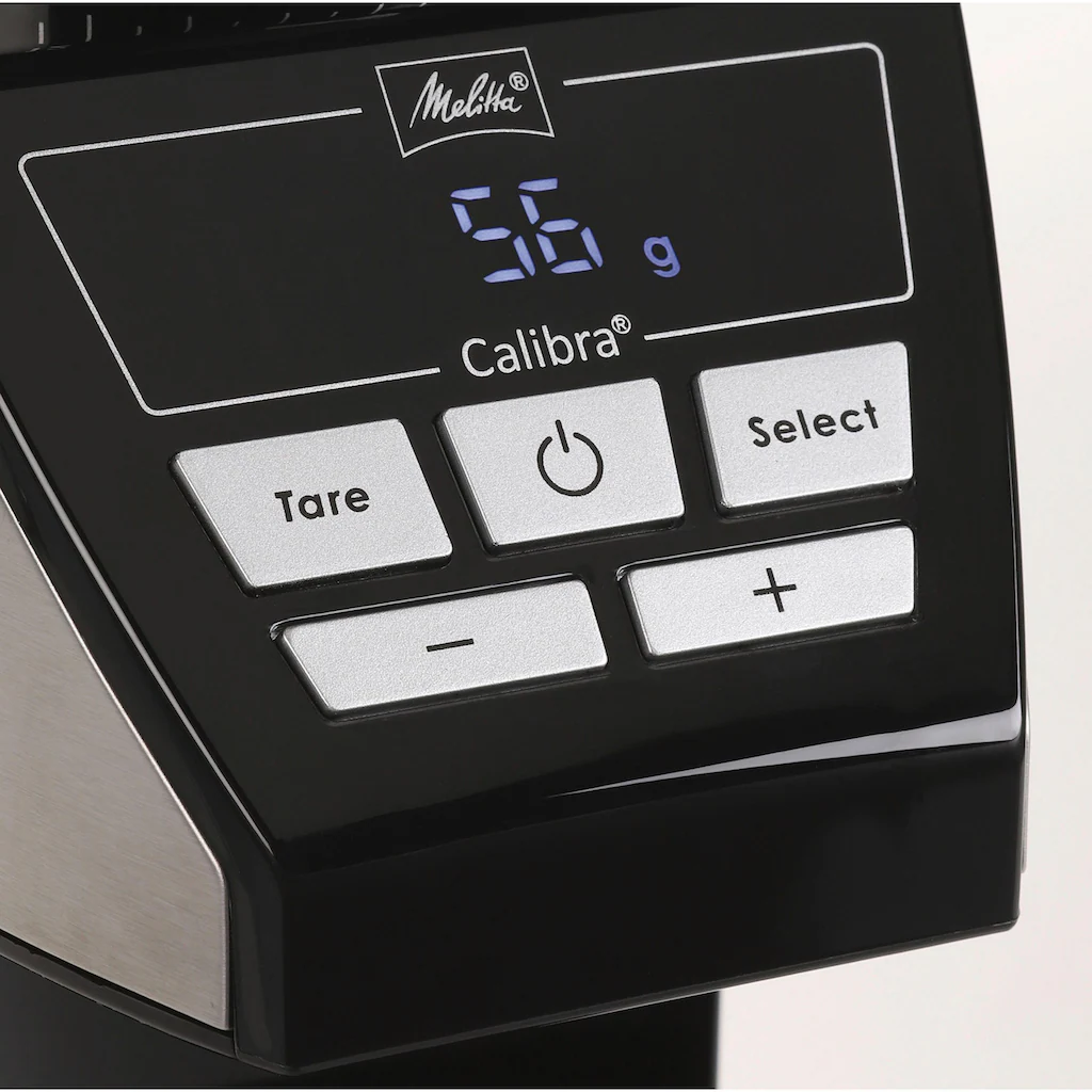 Melitta Kaffeemühle »Calibra 1027-01 Schwarz-Edelstahl«, 160 W, Kegelmahlwerk, 375 G Bohnenbehälter