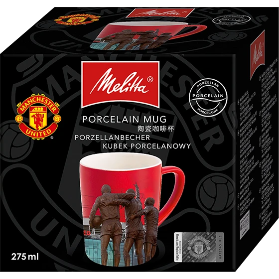 Ein Muss für Fans unseres Kaffee-Partners Manchester United! Mit diesem Becher aus hochwertigem Porzellan wird jeder Schluck zu einem ganz besonderen Fan-Genussmoment. Mit einem Fassungsvermögen von 290ml ist dieser Becher für jeden Manchester United Fan der beste Begleiter im Alltag.